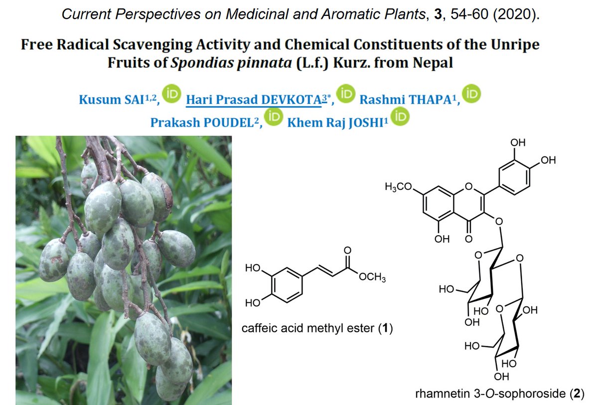 RT @Devkota_HP: Free Radical Scavenging Activity and Chemical Constituents of the Unripe Fruits of Spondias pinnata (L.f.) Kurz. from Nepal